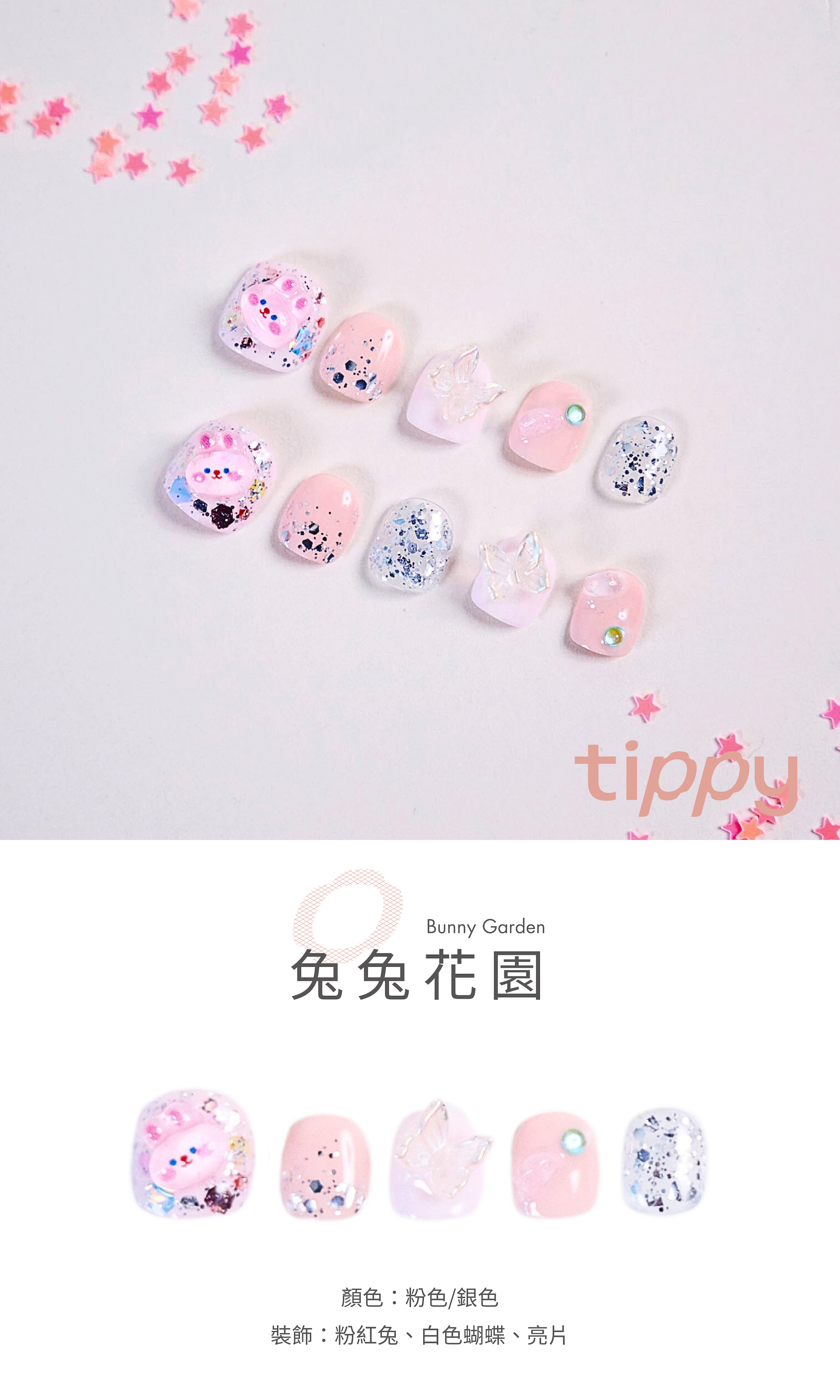 🧡 裝飾:粉紅兔、白色蝴蝶、亮片